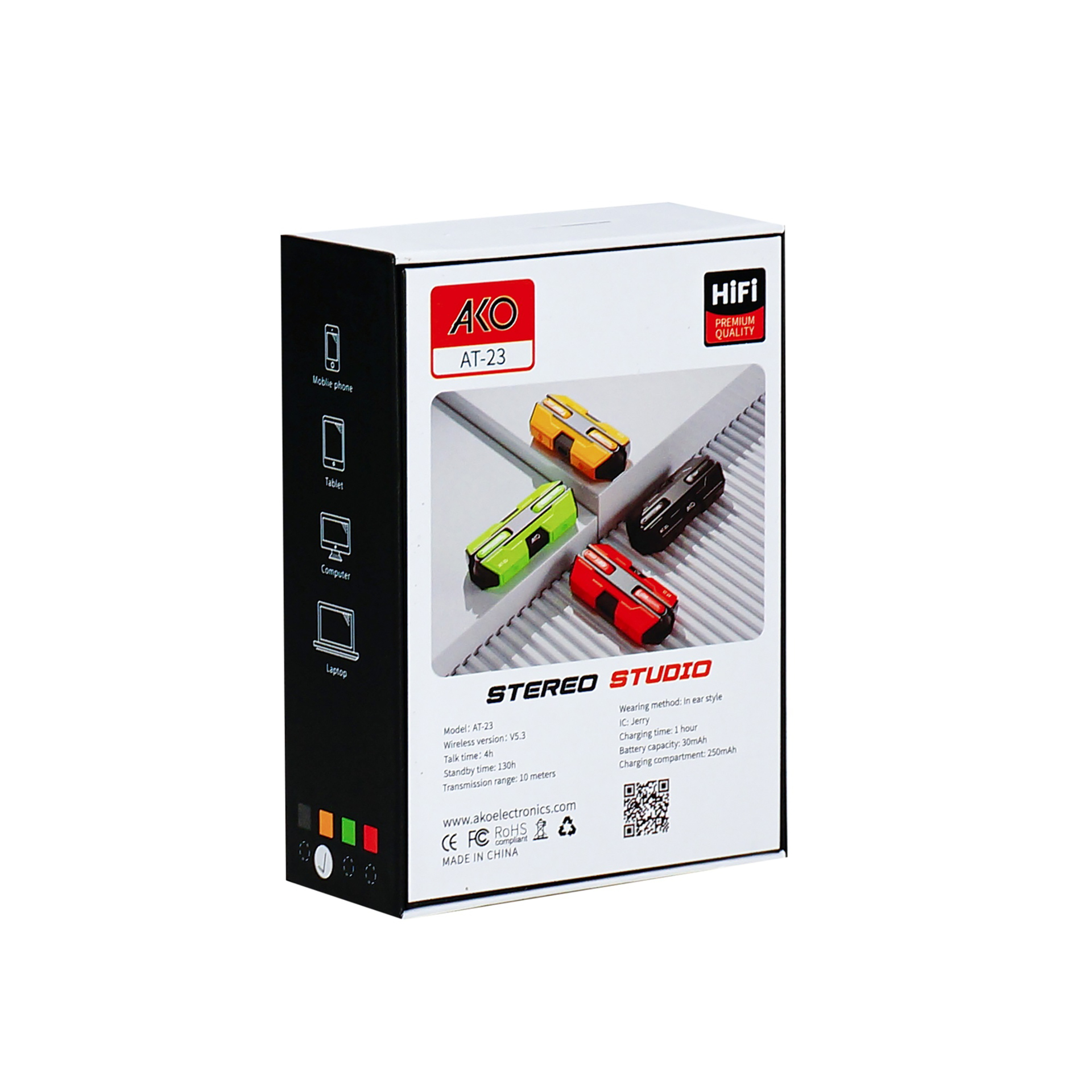 مشخصات کلی برند آکو نوع اتصال بی سیم نسخه بلوتوث 5.3 برد بلوتوث 10 متر مدت زمان لازم برای شارژ شدن دستگاه 1 ساعت پورت شارژ کردن دستگاه Type-C عمر باتری در حالت مکالمه 4 ساعت عمر باتری در حالت استند بای 130 ساعت